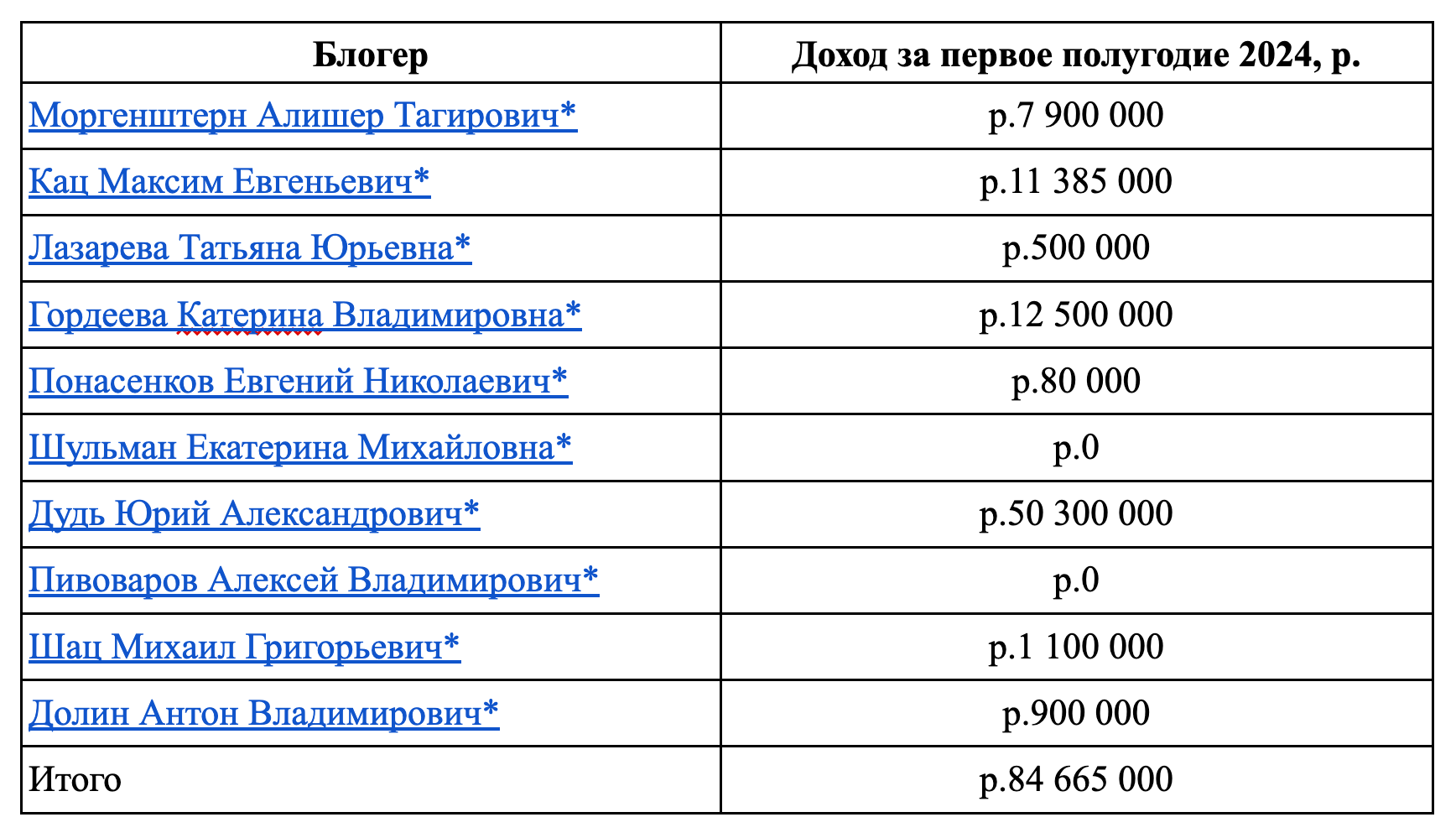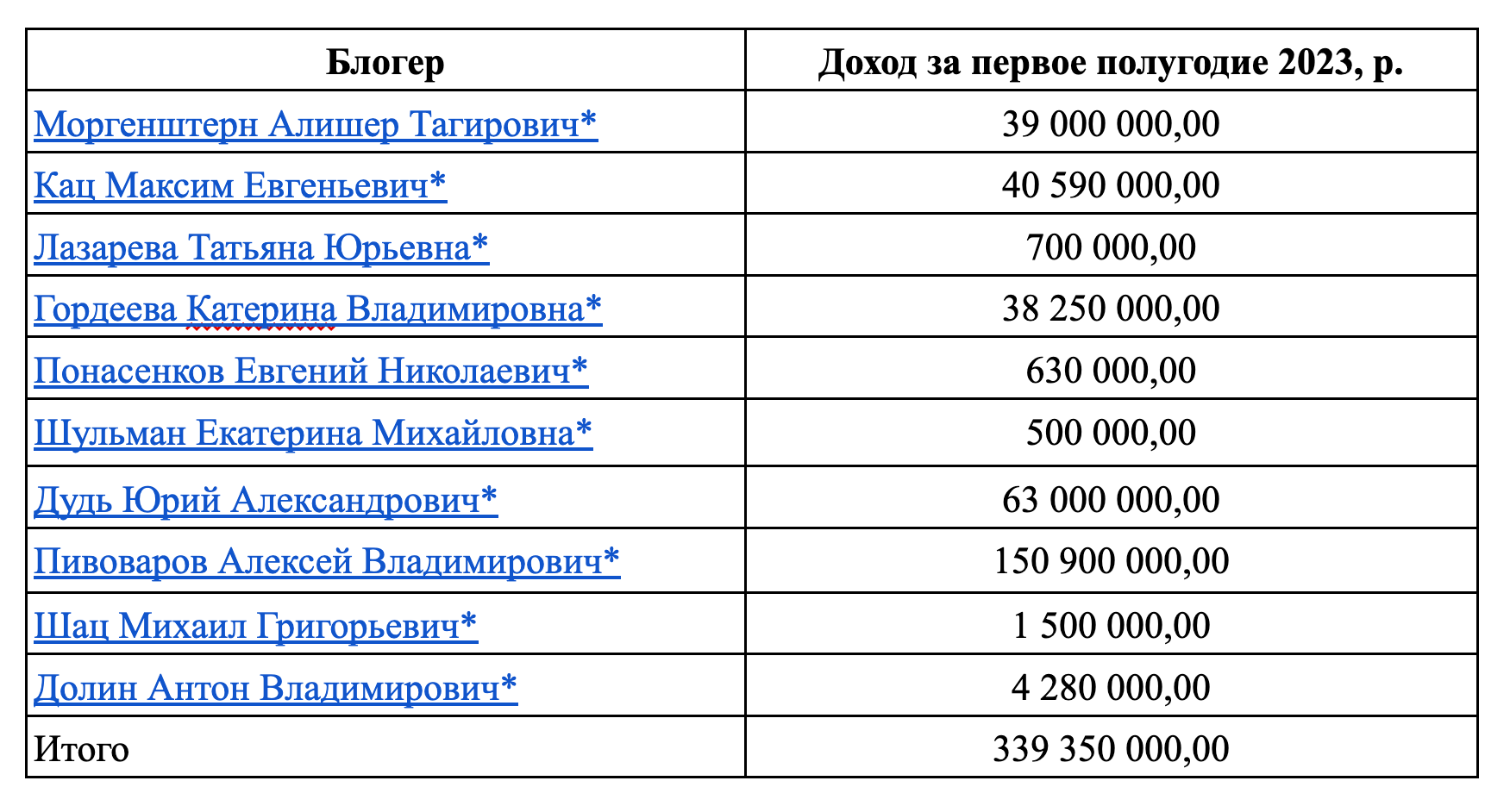 В первом полугодии 2023 года доход 10 топовых крупных блогеров-иноагентов составил